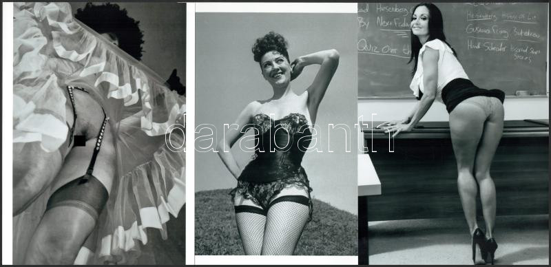 Leírás: "Csiklandós felvételek a hölgyek csábító praktikáiról", szolidan erotikus felvételek, 3 db modern nagyítás, jelzés nélkül, 21x15 cm