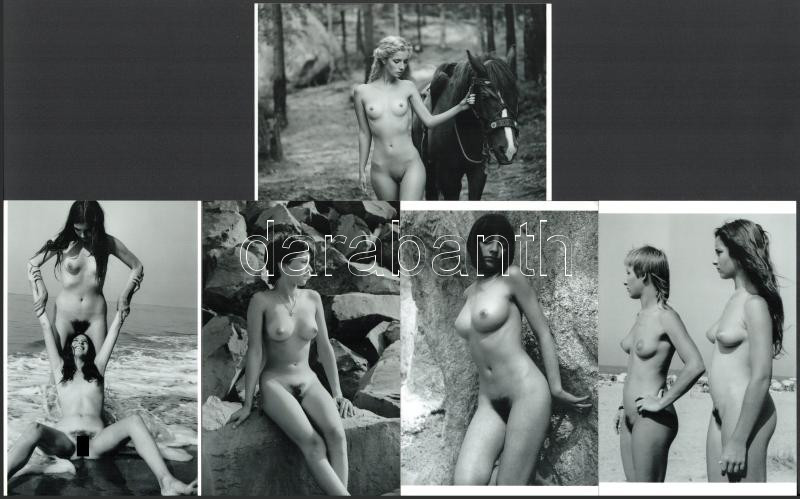 Leírás: "Kint a természetben", különböző időpontokban készült, szolidan erotikus felvételek, 5 db modern nagyítás, jelzés nélkül, 15x10 cm és 10x15 cm
