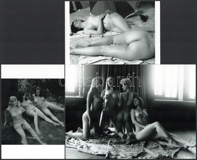 "Lányok társas együttléte", szolidan erotikus felvételek, amelyek eltérő időben és helyen készültek, 3 db modern nagyítás, jelzés nélkül, 15x21 cm és 15x10 cm