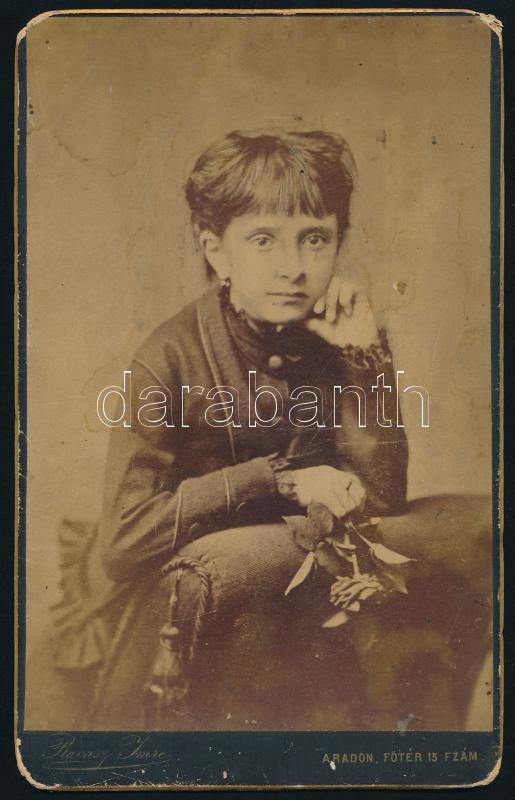 cca 1880-1890 A magyarbánhegyesi Vertán család lánytagjának portréja, kabinetfotó Ravasz Imre aradi műterméből, kissé viseltes állapotban, 21,5x13,5 cm