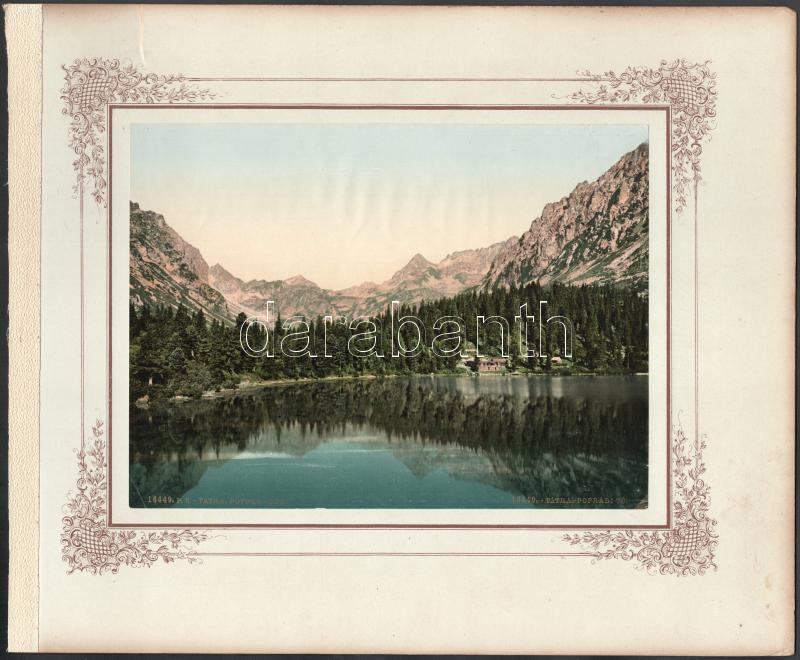 cca 1880-1900 Magas-Tátra, Poprádi-tó, fotokróm nyomat, sérült kartonon, 17x22,5 cm, karton: 28,5x34 cm / Vysoké Tatry, Popradské pleso, photochrom print, on damaged cardboard