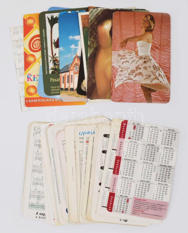 Leírás: 37 db vegyes kártyanaptár, közte két erotikus