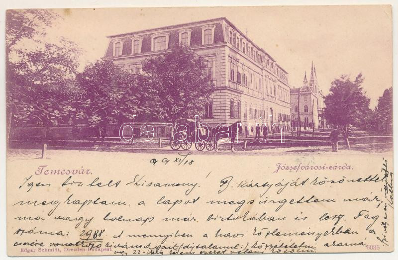 1899 Temesvár, Timisoara; Józsefvárosi zárda. Schmidt Edgar kiadása / nunnery, boarding school + "Kölbig Ferenc Temesvár, a Cosmopolit Képeslevelezőlapgyűjtők egyletének magyarországi elnöke" (EB)