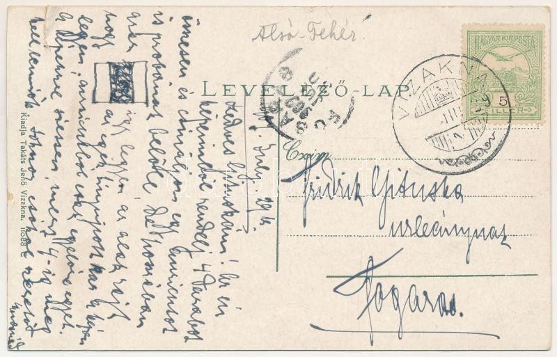 1909 Vízakna, Salzburg, Ocna Sibiului; sós gyógyfürdő, forrás. Takáts Jenő kiadása / salt baths, spa, spring source. Art Nouveua forest frame (szakadás / tear)