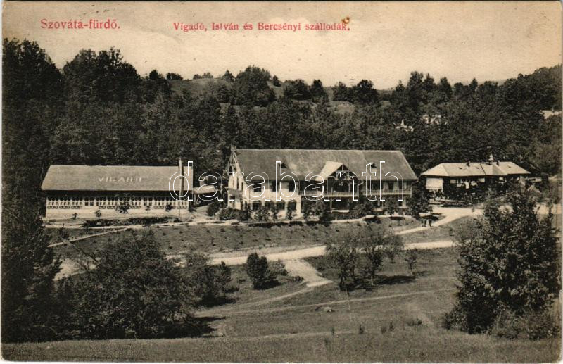 1914 Szovátafürdő, Baile Sovata; Vigadó, István és Bercsényi szállodák... https://www.darabanth.com/hu/512-Gyorsarveres/512.0/Kepeslapok/Erdely~104/1914-Szovatafurdo-Baile-Sovata-Vigado-Istvan-es-Bercsenyi-szallodak-Schuster-Emil-kiadC3~II3462169