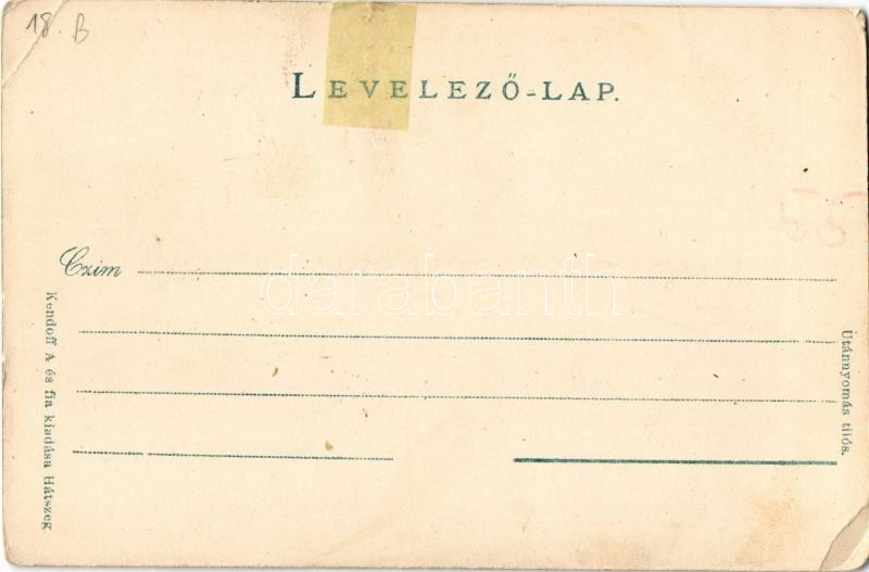 Leírás: Demsus, Densus (Hunyad); Középkori ortodox templom. Kendoff A. és fia kiadása (Hátszeg) / Medieval Orthodox stone church (r)