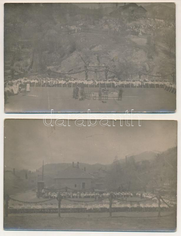 Lupény, Lupeni; - 2 db RÉGI fotóképeslap: a bánya szerencsétlenség áldozatainak temetése / 2 pre-1945 photo postcards: funeral for the victims of the mining accident