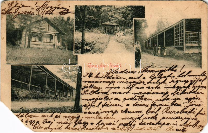 Leírás: 1905 Gnézda, Gnazdy, Gnazdá, Kniesen, Hniezdne; fürdő épületek és pavilon / spa, bath, buildings and pavilion (EM)