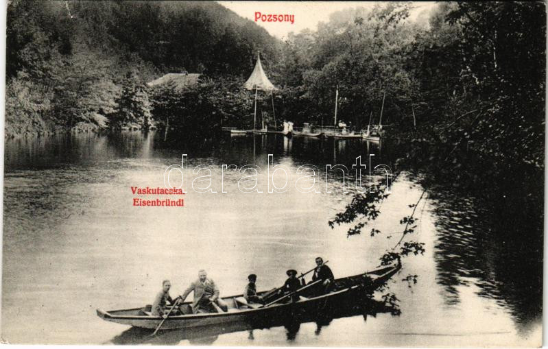 Leírás: 1907 Pozsony, Pressburg, Bratislava; Vaskutacska. Bediene dich allein / Eisenbrünnel (Eisenbründl) / Zelezná Studienka / lake (EK)