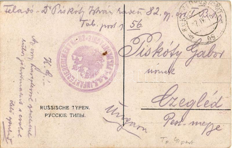 Leírás: 1916 Russische Typen / WWI Austro-Hungarian K.u.K. military, Russian type + "K.u.K. Infanterieregiment Nr. 82. 1. Feldkompagnie" (fa)