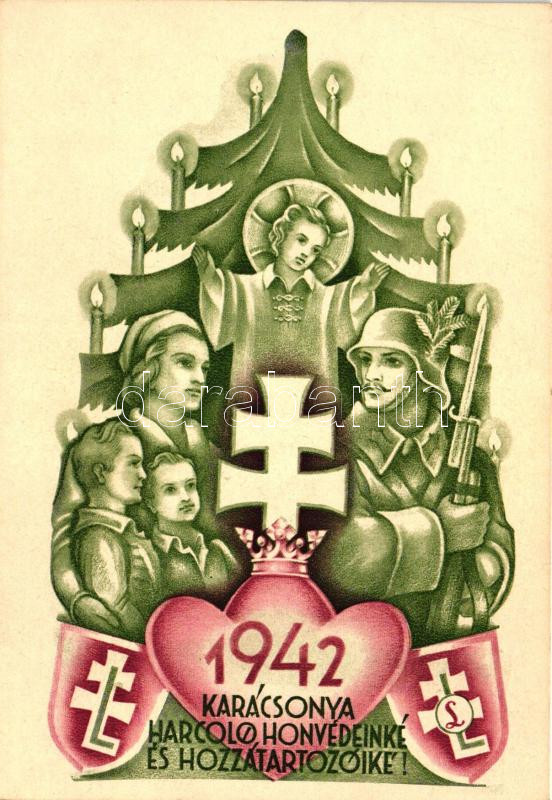 1942 Karácsonya Harcoló honvédeinké és hozzátartozóiké; Leventeifjúság... https://www.darabanth.com/hu/512-Gyorsarveres/512.0/Kepeslapok/Katonai~172/1942-Karacsonya-Harcolo-honvedeinke-es-hozzatartozoike-Leventeifjusag-honvedkaracsonya-~II1050678