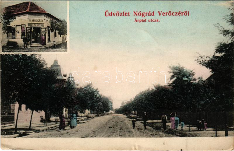 1907 Verőce, Nógrádverőce; Árpád utca, Vavrik Géza üzlete és saját kia... https://www.darabanth.com/hu/512-Gyorsarveres/512.0/Kepeslapok/Magyarorszag~103/1907-Veroce-Nogradveroce-Arpad-utca-Vavrik-Geza-uzlete-es-sajat-kiadasa-gyurodesek~II3459726
