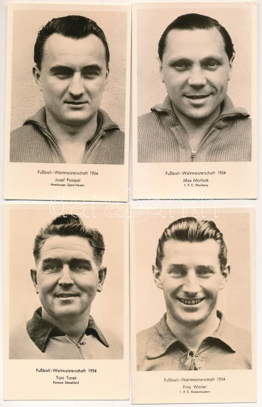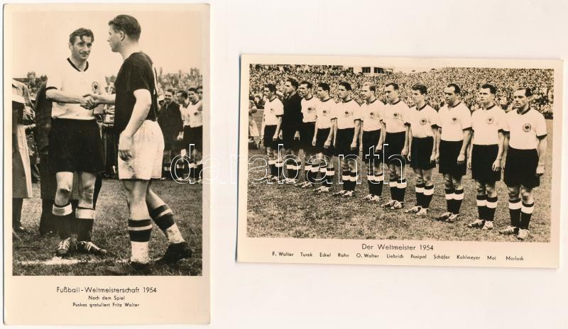 1954 Fussball - Weltmaisterschaft / 6 db MODERN sport képeslap az 1954-es labdarúgó világbajnokságról, csoportkép, játékosok, közte Puskás Ferenc / 6 modern sport postcards from the 1954 Football World Championship, group picture, players, with Ferenc Puskás