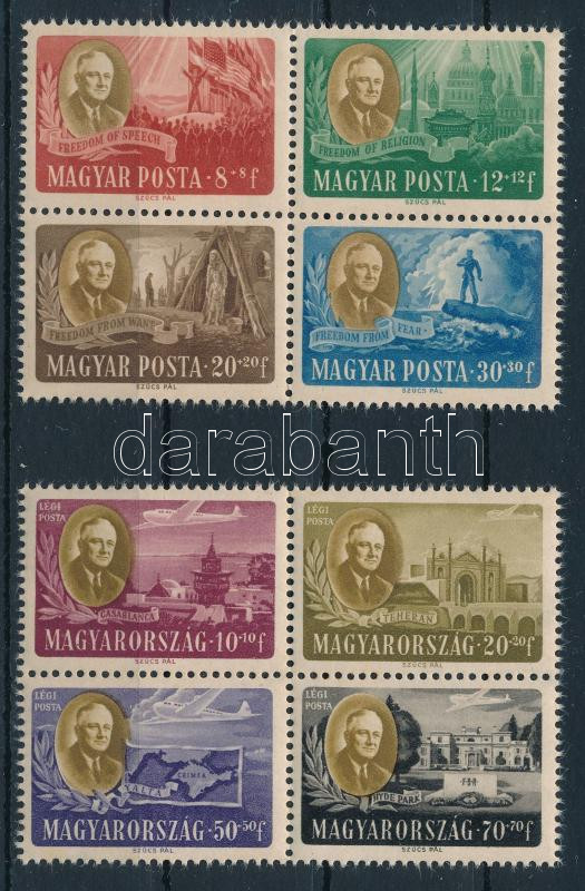 1947 F. D. Roosevelt sor blokkból kitépett négyestömbökben (30.000) https://www.darabanth.com/hu/512-Gyorsarveres/512.0/Kiemelt-magyar-filatelia-tetelek-es-gyujtemenyek/Egyes-magyar-kiadasok-rendkivul-alacsony-aron~587/1947-F-D-Roosevelt-sor-blokkbol-kitepett-negyestombokben-30000~II3462263