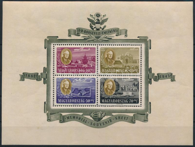 1947 Roosevelt légi blokk (30.000) https://www.darabanth.com/hu/512-Gyorsarveres/512.0/Kiemelt-magyar-filatelia-tetelek-es-gyujtemenyek/Egyes-magyar-kiadasok-rendkivul-alacsony-aron~587/1947-Roosevelt-legi-blokk-30000~II3457366
