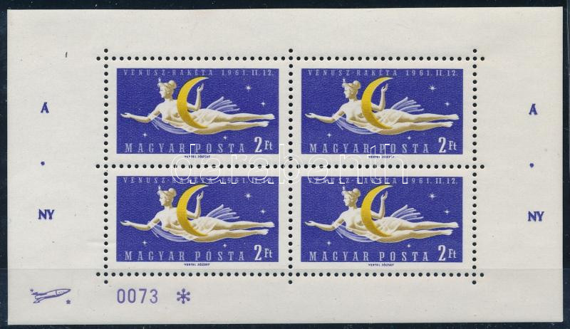 1961 Vénusz-rakéta Á.NY kisív magánfelülnyomással, 0073 sorszámmal https://www.darabanth.com/hu/512-Gyorsarveres/512.0/Kiemelt-magyar-filatelia-tetelek-es-gyujtemenyek/Egyes-magyar-kiadasok-rendkivul-alacsony-aron~587/1961-Venusz-raketa-ANY-kisiv-maganfelulnyomassal-0073-sorszammal~II3461731