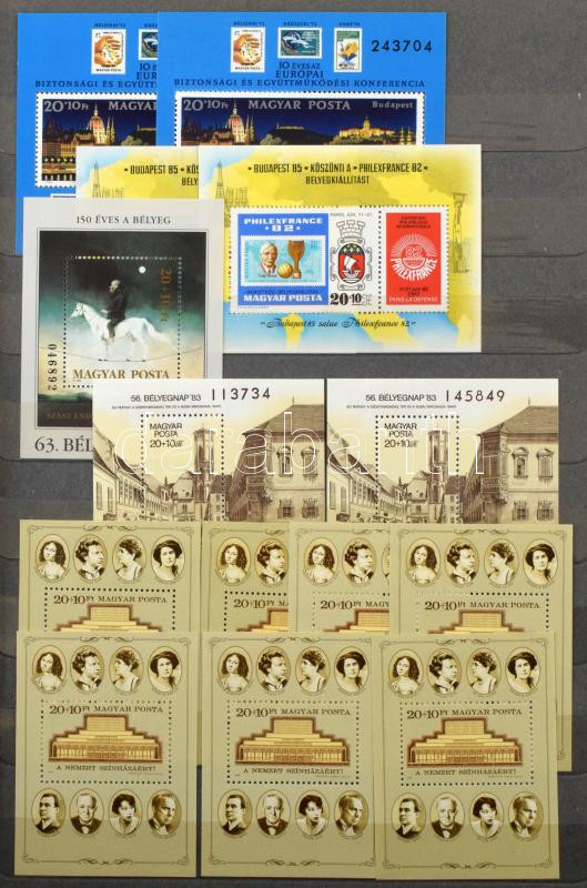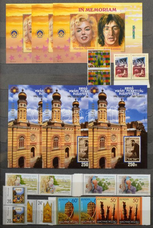 Leírás: Modern és 1990-2000 évekbeli magyar bélyegek, sorok, blokkok, emlékívek 12 lapos nagy berakóban