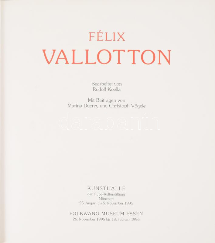 Félix Vallotton. Bearbeitet von Rudolf Koella. Mit Beiträgen von Marina Ducrey und Christoph Vögele. München - Essen, 1995-1996., Kunsthalle - Folkwang Museum Essen. Német nyelven. Gazdag képanyaggal illusztrált. Kiadói kartonált papírkötés.