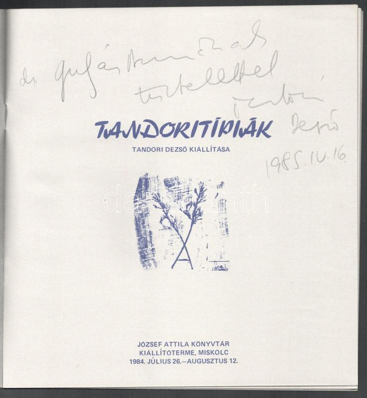 Tandoritípiák. Tandori Dezső kiállítása. DEDIKÁLT! Miskolc, 1984, Józs... https://www.darabanth.com/hu/512-Gyorsarveres/512.0/Konyvek/Konyvek-Epiteszet-muveszet~672/Tandoritipiak-Tandori-Dezso-kiallitasa-DEDIKALT-Miskolc-1984-Jozsef-Attila-Konyvtar-~II3464297