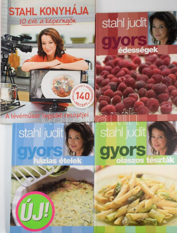 4 db Stahl Judit szakácskönyv: Gyors házias ételek.; Gyors olaszos tészták.; Gyors édességek.; Stahl konyhája 10 éve a képernyőn. A tévéműsor legjobb receptjei. Vegyes állapotban.