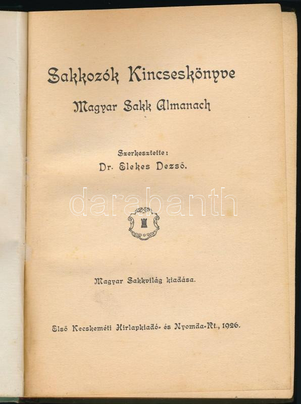 Elekes Dezső (szerk.): Sakkozók kincseskönyve. 1926, Magyar Sakkvilág.... https://www.darabanth.com/hu/512-Gyorsarveres/512.0/Konyvek/Konyvek-Sport-sakk-hegymaszas~668/Elekes-Dezso-szerk-Sakkozok-kincseskonyve-1926-Magyar-Sakkvilag-Kiadoi-egeszvaszon-ko~II3457955
