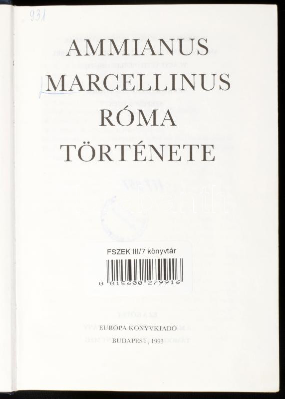 Ammianus Marcellinus: Róma története. Európa Könyvkiadó, 1993. 793p. K... https://www.darabanth.com/hu/512-Gyorsarveres/512.0/Konyvek/Konyvek-Tortenelem~670/Ammianus-Marcellinus-Roma-tortenete-Europa-Konyvkiado-1993-793p-Kiadoi-nyl-kotesben-v~II3458557