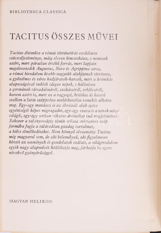 Leírás: Bibliotheca Classica sorozat 7 kötete: Tacitus I-II., Apuleius, Suetonius, Petronius, Ifjabb Plinius, Szophoklész. Kiadói egészvászon-kötés, különböző állapotú kiadói papír védőborítóban (egy tételről hiányzik)