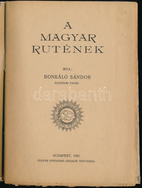 Bonkáló Sándor: A magyar rutének. Bp., 1920. Pfeifer Ferdinánd. 44p. K... https://www.darabanth.com/hu/512-Gyorsarveres/512.0/Konyvek/Konyvek-Tortenelem~670/Bonkalo-Sandor-A-magyar-rutenek-Bp-1920-Pfeifer-Ferdinand-44p-Kiadoi-papirkotes-ra~II3462340