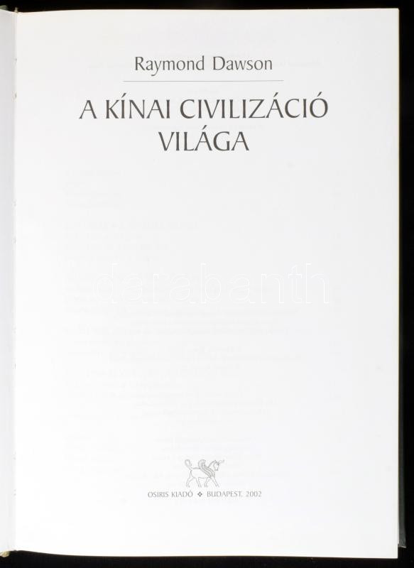 Raymond Dawson: A kínai civilizáció világa. Osiris Kiadó, 2002. Kiadói... https://www.darabanth.com/hu/512-Gyorsarveres/512.0/Konyvek/Konyvek-Tortenelem~670/Raymond-Dawson-A-kinai-civilizacio-vilaga-Osiris-Kiado-2002-Kiadoi-kartonalt-papirkote~II3459153
