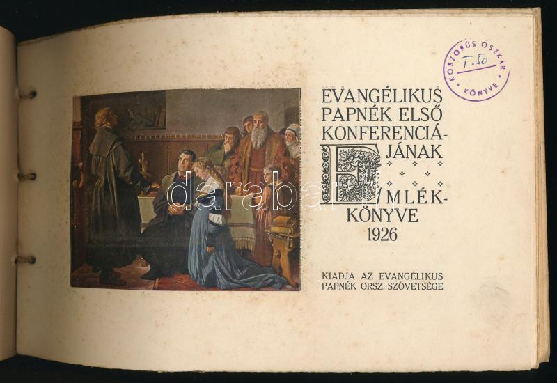 Evangélikus Papnék első konferenciájának emlékkönyve 1926. Kiadja az Evangélikus Papnék Orsz. Szövetsége. Pilisklotildliget, 1926, Fébé Evangélikus Diakonissza Anyaház-ny., 53+(3) p. Kiadói zsinórfűzéses papírkötés, kissé koszos borítóval, belül jó állapotban, tulajdonosi bélyegzővel.