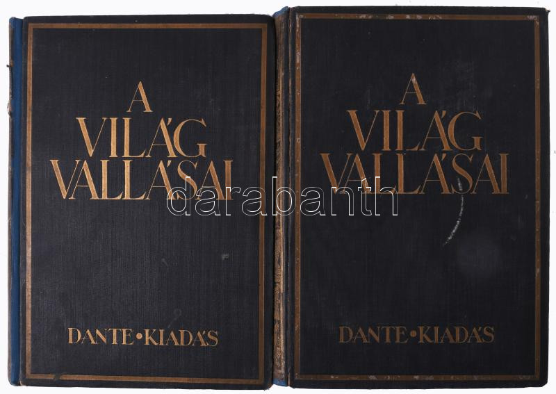 Szimonidesz Lajos: A világ vallásai. I.-II. köt. [Komplett]. I.: Primitív és kultúrvallások. Iszlám és buddhizmus. II.: Zsidóság és kereszténység. Bp., [1928], Dante. Gazdag szövegközi és egészoldalas képanyaggal. Kiadói gazdagon aranyozott egészvászon-kötés.