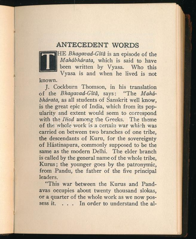 The Bhagavad-gita. The Book of Devotion. Dialogue Between Krishna, Lord of Devotion, and Arjuna, Prince of India. From the Sanskrit by William [Quan] Judge. Los Angeles, 1920, United Lodge of Theosophists. Angol nyelven. Aranyozott egészbőr-kötésben, sérült borítóval.