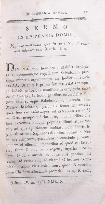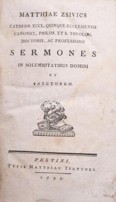 [Zsivics Mátyás (1751-1814)] Matthiae Zsivics: Sermones in solemnitatibus Domini et sanctorum. Pestini, 1799, Typis Matthiae Trattner, 4 sztl. lev.+ 387 p. Latin nyelven. Félbőr-kötésben, viseltes borítóval és gerinccel, helyenként foltos lapokkal.