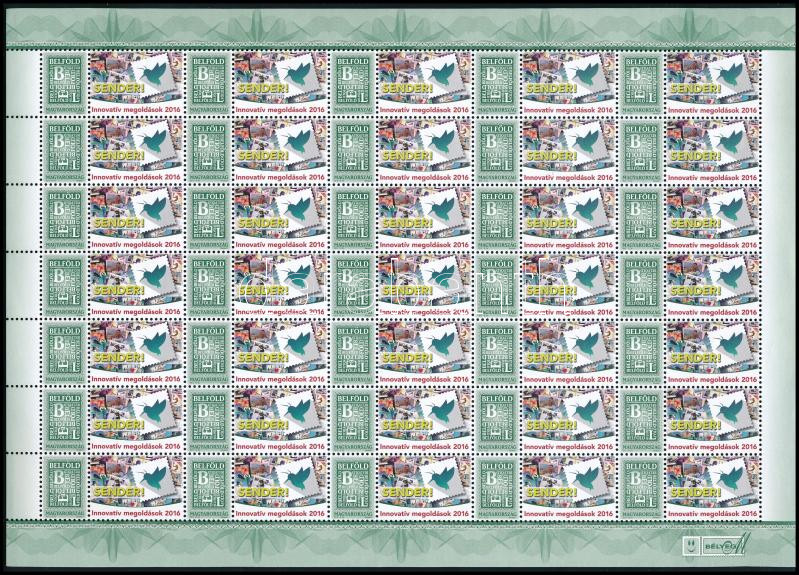 2016 Belföld - Sender! Innovatív megoldások teljes ív, ritka! https://www.darabanth.com/hu/512-Gyorsarveres/512.0/Magyar-filatelia-es-postatortenet/2010-2019-kozotti-kiadasok~645/2016-Belfold-Sender-Innovativ-megoldasok-teljes-iv-ritka~II3463816