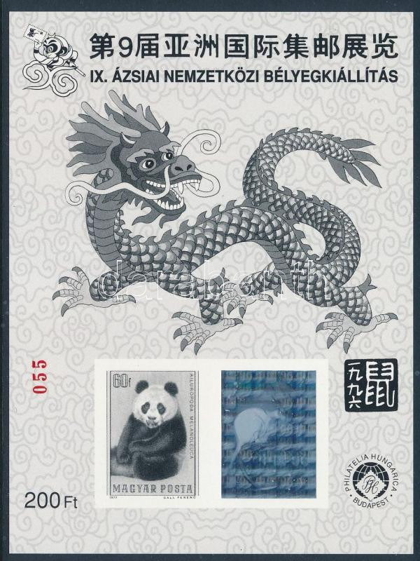 Leírás: 1998 IX. Ázsiai Nemzetközi Bélyegkiállítás feketenyomat emlékív 055 sorszámmal