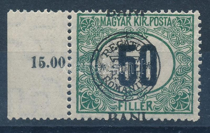Leírás: Kolozsvár 1919 Portó 50f elcsúszott felülnyomattal és gépszínátnyomattal, Bodor vizsgálójellel