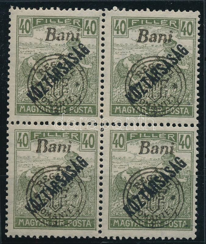 Leírás: Nagyvárad 1919 Arató / Köztársaság 40f 4-es tömb kihasadt B betű lemezhibával, Bodor vizsgálójellel
