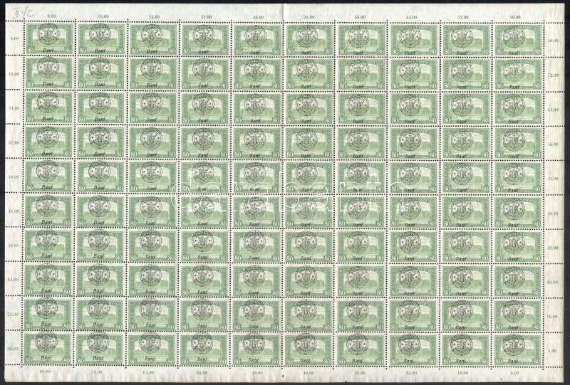 Leírás: Nagyvárad 1919 Parlament 80f hajtott teljes ív, II C típus, lemezhibákkal, Bodor vizsgálójellel (rozsda / stain)