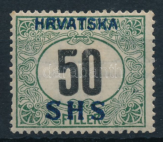 Leírás: SHS 1918 Zöldportó 50f VII a vízjellel, Bodor vizsgálójellel (**54.000)