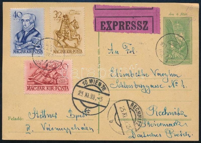 1939 Expressz levelezőlap Ausztriába https://www.darabanth.com/hu/512-Gyorsarveres/512.0/Magyar-filatelia-es-postatortenet/Pengo-idoszak-1926-1944~632/1939-Expressz-levelezolap-Ausztriaba~II3328216