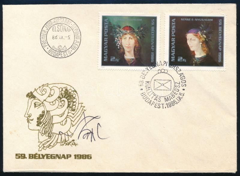 Leírás: 1986 Bélyegnap FDC a tervező, Szász Endre aláírásával