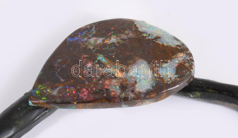 Leírás: Opál fekete korallra ragasztva, ezüst (Ag) dísszel, opál h: 3 cm, teljes h: 16 cm