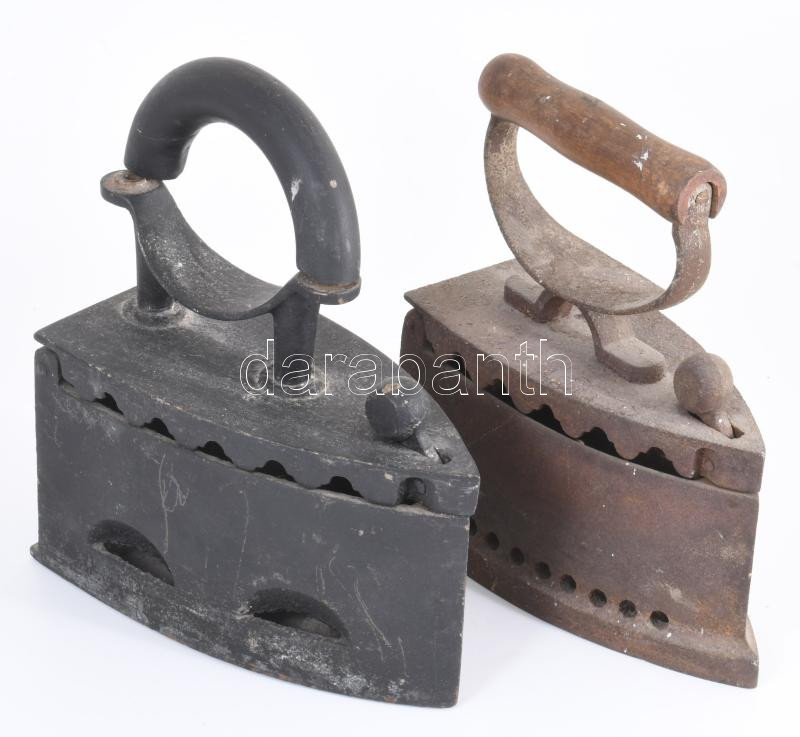 Leírás: 2 darab szenes vasaló, egyik csavarhiánnyal, m: 20-23 cm