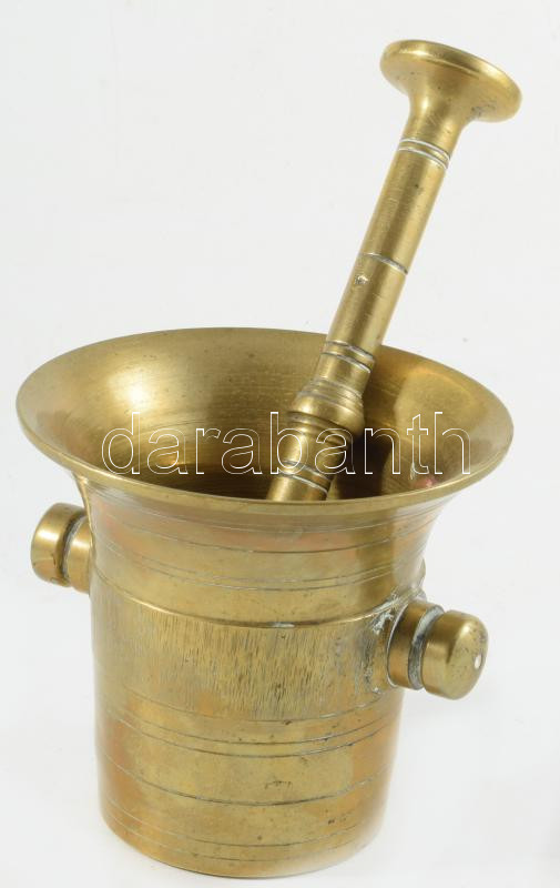 Bronz mozsár törővel, m: 10 cm, törő h: 19 cm