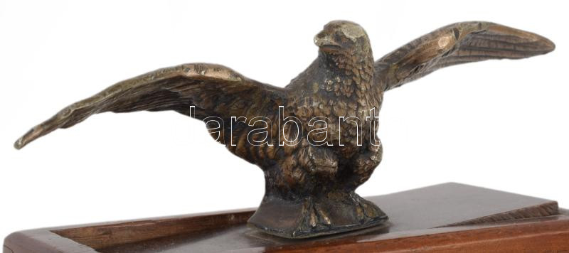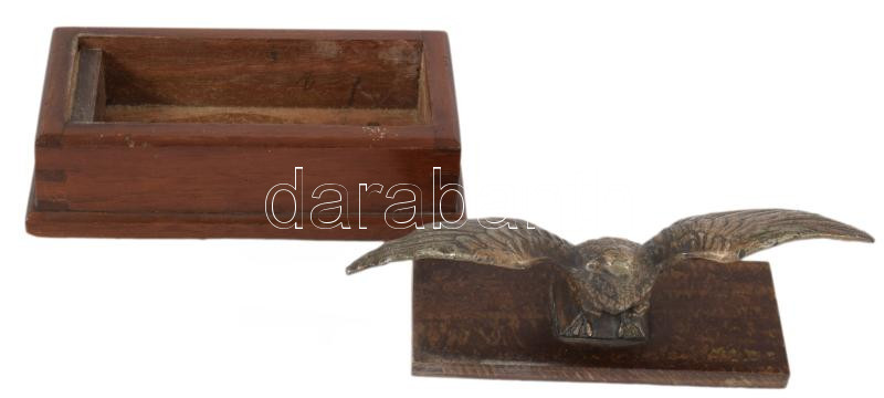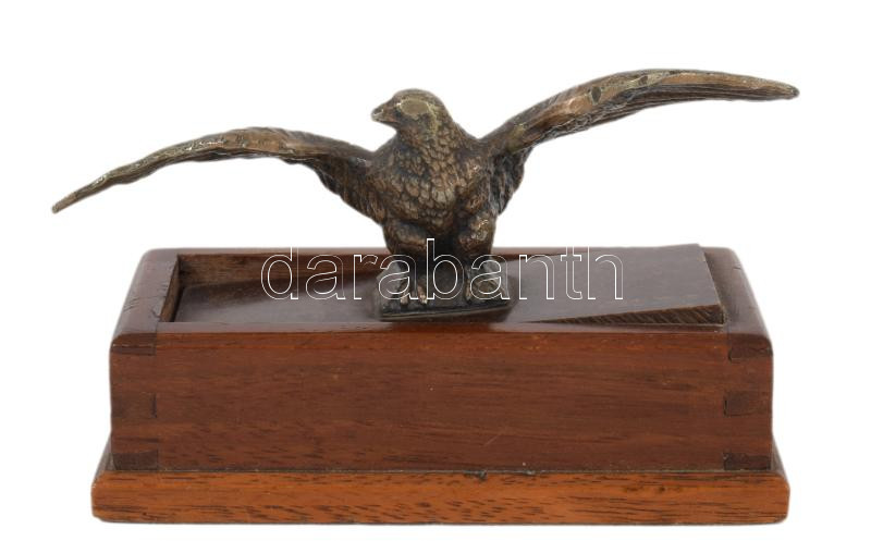 Díszdoboz, fedelén turul fém alakjával, 12x7 cm
