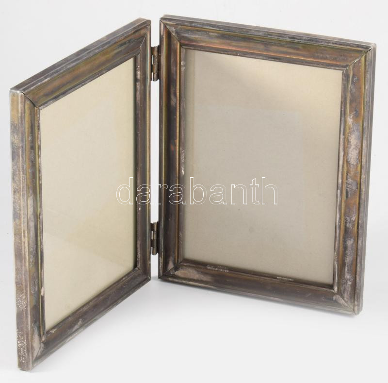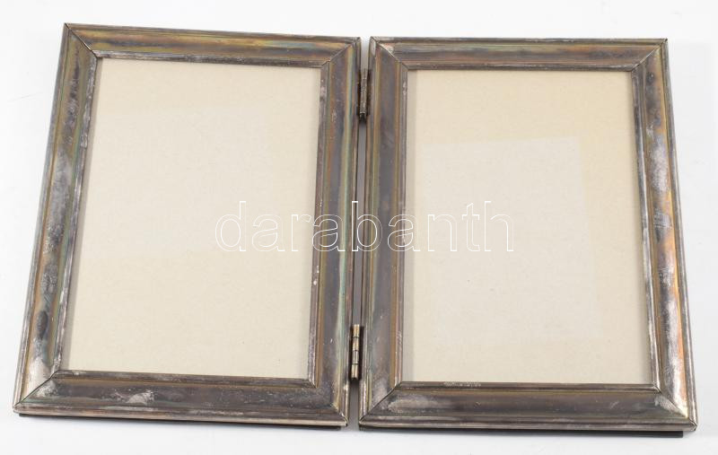 Leírás: Dupla képkeret, kinyitható. Egyenként 15x20 cm Ezüstözött fém