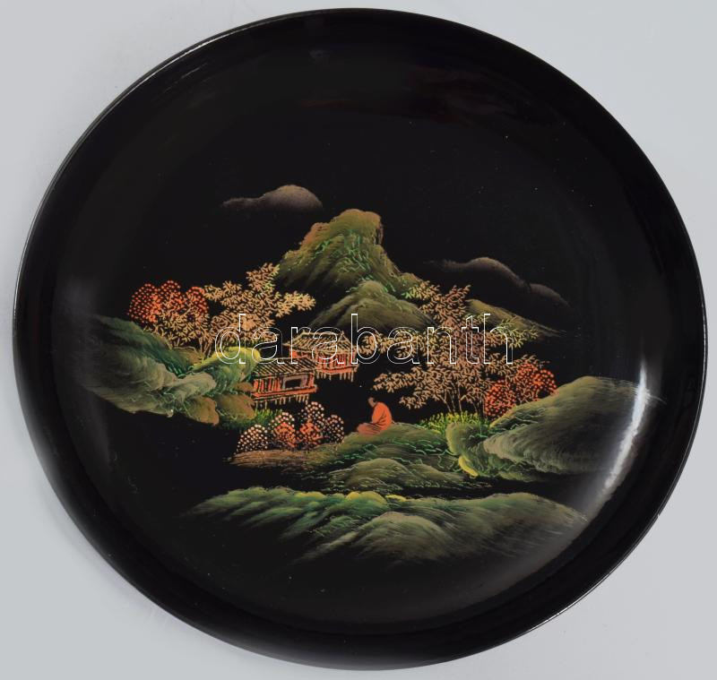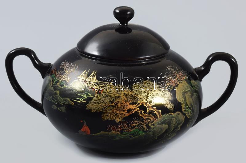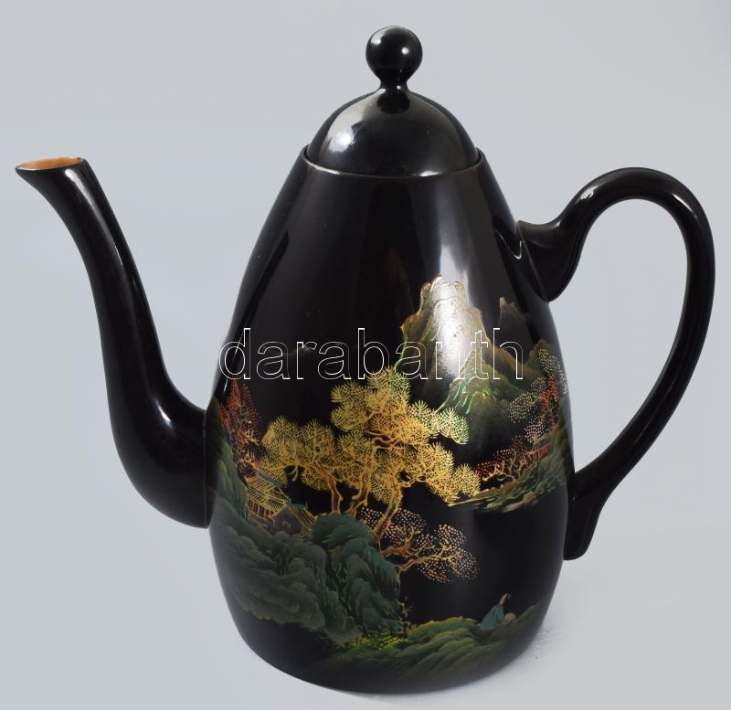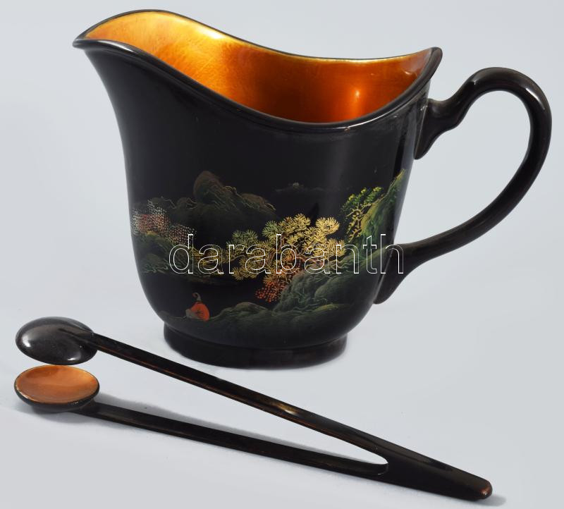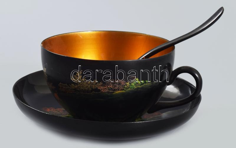 Leírás: Japán lakkozott fa kávés készlet, 1-1 kopással.