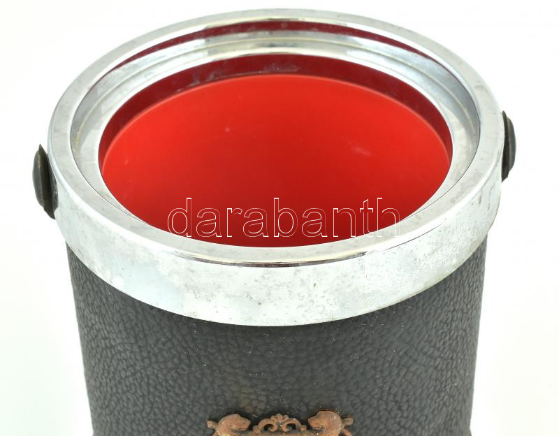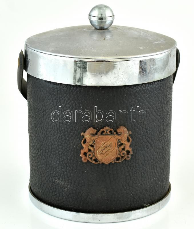 Leírás: Retró jégtartó oroszlános címerrel, műbőr, műanyag, kissé kopott, m: 16 cm, d: 15 cm