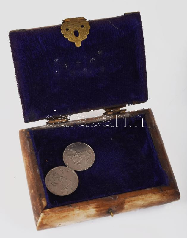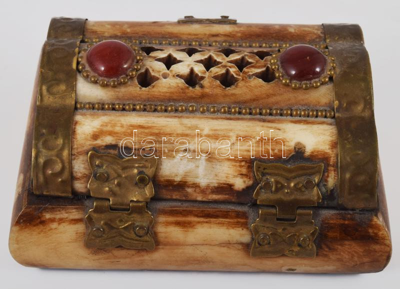 Tevecsont díszdoboz, zsanérja hiányos, 10x8 cm