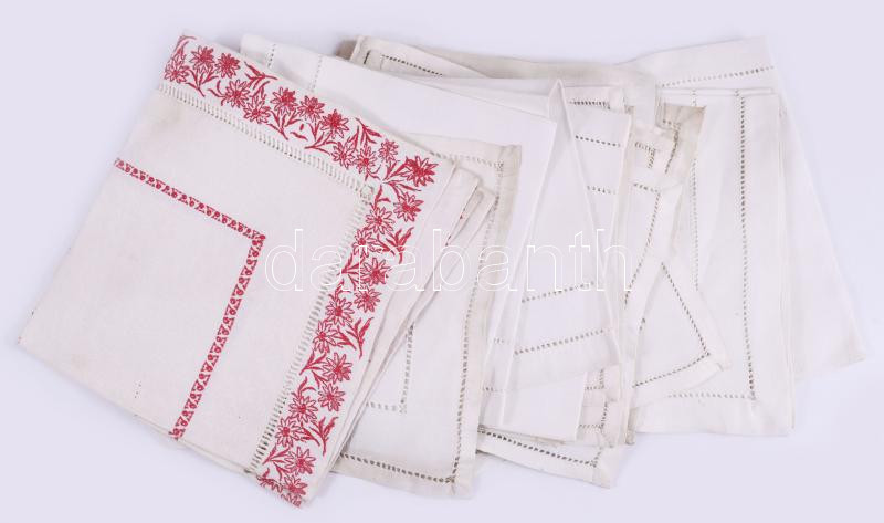 Leírás: 15 darab régi szalvéta, ölterítő, közte monogramos
